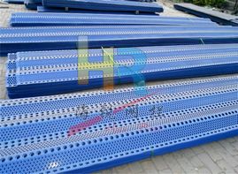 防風(fēng)抑塵網(wǎng)是利用空氣動力學(xué)原理,按照實施現(xiàn)場環(huán)境風(fēng)洞實驗結(jié)果加工成一定幾何形狀、開孔率和不同孔形組合擋風(fēng)抑塵墻,使流通的空氣(強風(fēng))從外通過墻體時,在墻體內(nèi)側(cè)形成上、下干擾的氣流以達到外側(cè)強風(fēng),內(nèi)側(cè)弱風(fēng),外側(cè)小風(fēng),內(nèi)側(cè)無風(fēng)的效果,從而防止粉塵的飛揚。