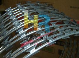 規(guī)格多,品種全.(2012)8001-8002/鐵路工程建設(shè)通用規(guī)格.刺絲滾籠刺長(zhǎng)22mm, 圈徑為500mm,芯線(xiàn)2.5mm,刀刺中心間距34mm,刀片厚度0.5mm,刺絲滾籠圈距200mm,立柱支架30x50x2mm,縱向刺絲拉筋2.5x2.2x20mm,支架抱箍為8mm,配件都采用熱鍍鋅處理.